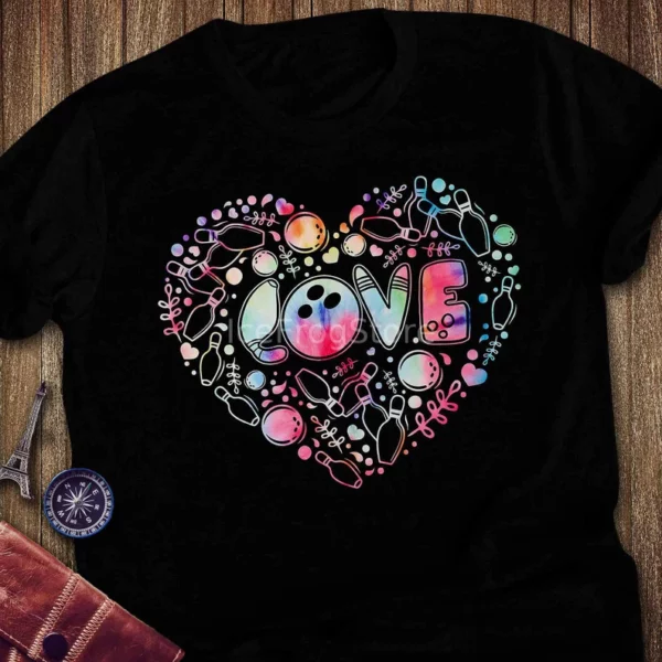 Bowling Tie Dye Love Heart Pattern T-shirt